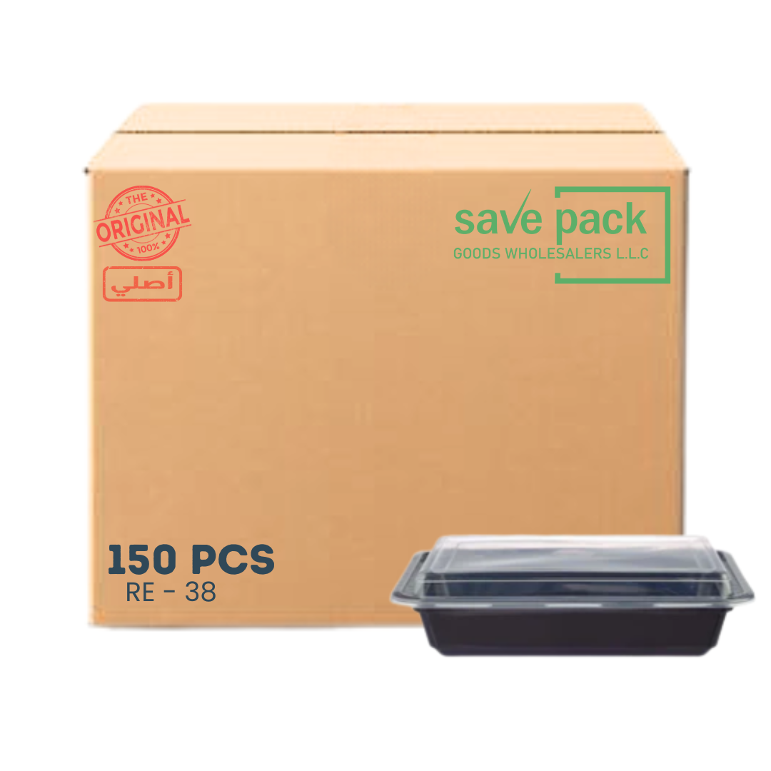 RE-38 حاوية قابلة للاستخدام في الميكروويف بقاعدة وغطاء أسود - 150 قطعة