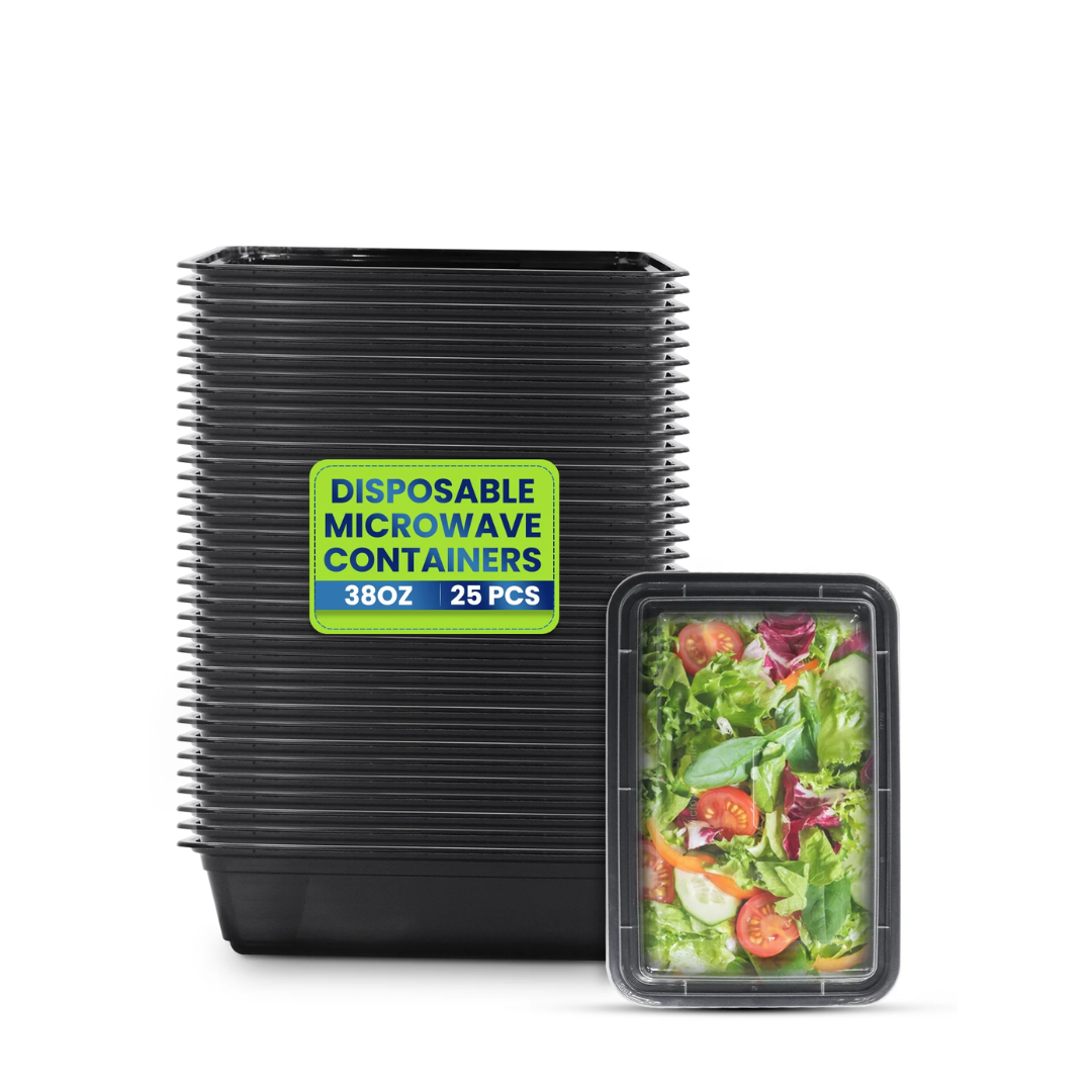 RE-38 حاوية قابلة للاستخدام في الميكروويف بقاعدة وغطاء أسود - عبوة