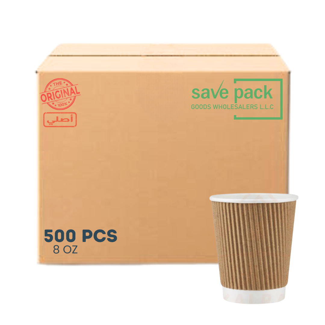 كوب ريبل بني اللون، علبة كرتونية سعة 8 أونصة، 500 قطعة