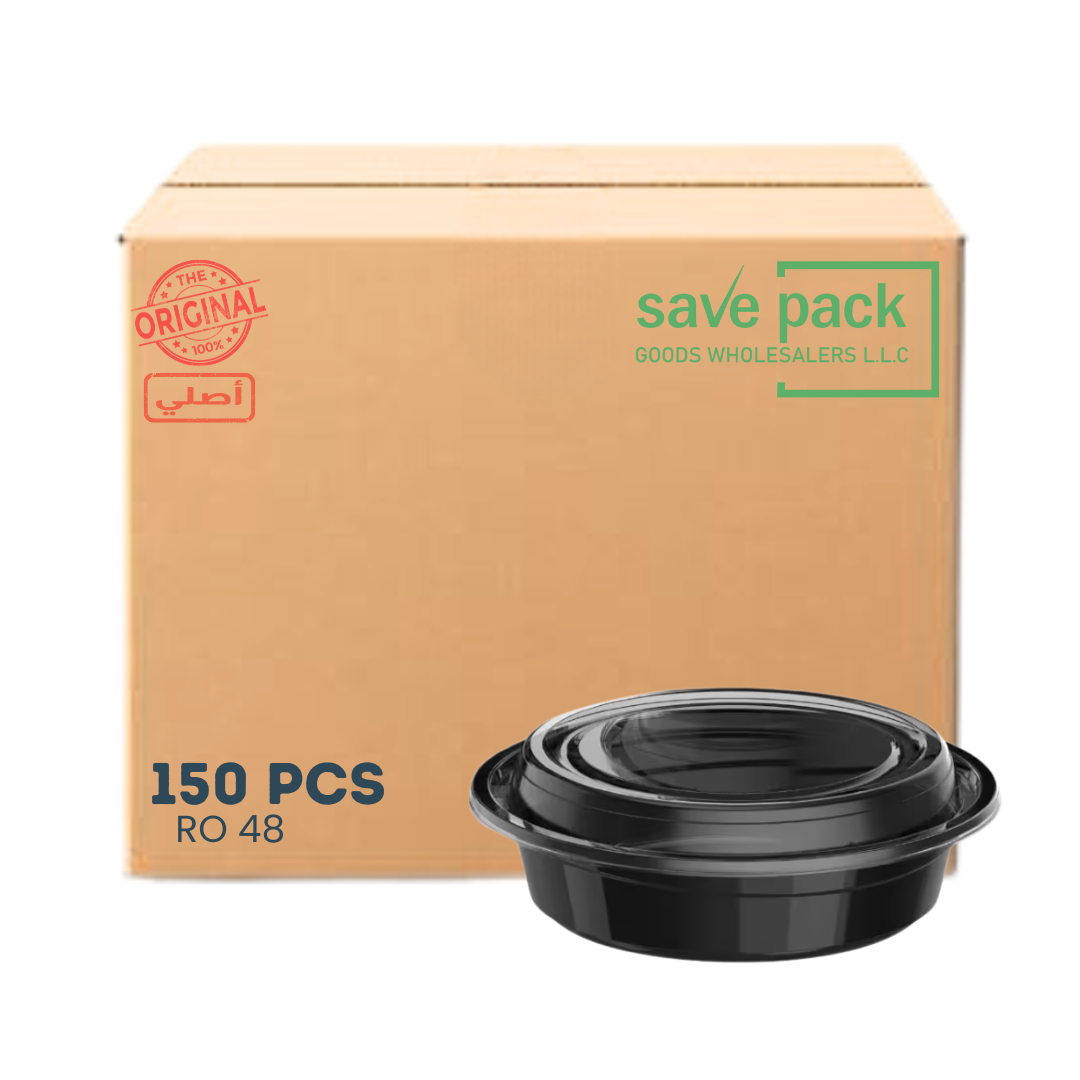 RO-48 حاوية قابلة للاستخدام في الميكروويف بقاعدة وغطاء أسود - كرتون